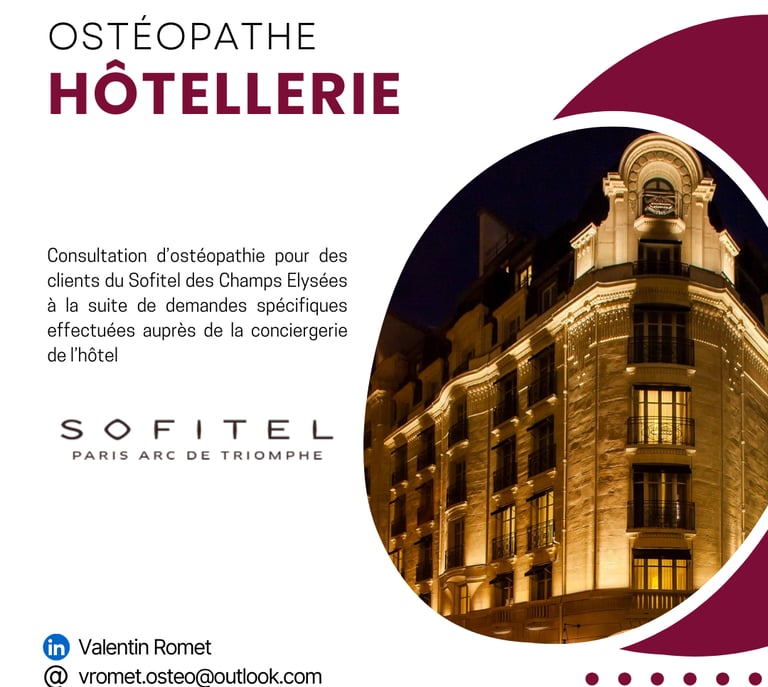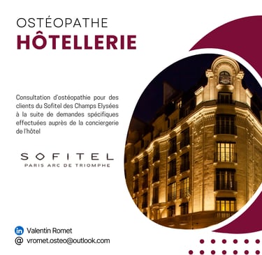 Consultation d’ostéopathie pour des clients du Sofitel des Champs Elysées à la suite de demandes spécifiques effectuées auprès de la conciergerie de l’hôtel
