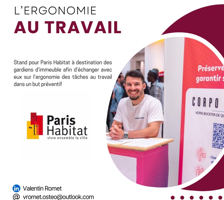 Stand pour Paris Habitat à destination des gardiens d’immeuble afin d’échanger avec eux sur l’ergonomie des tâches au travail dans un but préventif