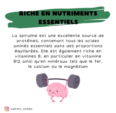 Pourquoi est-ce si important ? Les protéines sont les blocs de construction de notre corps, essentielles pour la croissance musculaire, la récupération après l’exercice et même pour maintenir un système immunitaire fort. Et avec la spiruline, tu obtiens ces protéines de la manière la plus pure et la plus naturelle possible. 🌱✨