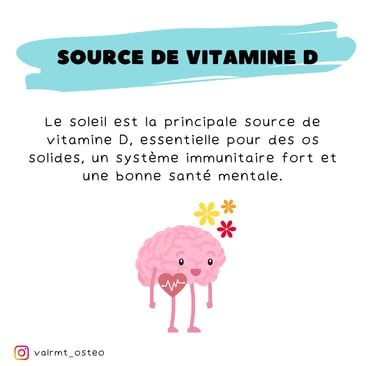 Source de Vitamine D 🌿 : Le soleil est la principale source de vitamine D, cruciale pour des os solides, un système immunitaire robuste et une bonne santé mentale.