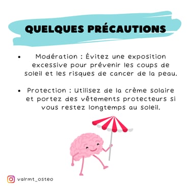 Modération : Évite une exposition excessive pour prévenir les coups de soleil et réduire les risques de cancer de la peau.
