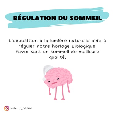 Régulation du Sommeil 🛌 : L’exposition à la lumière naturelle aide à réguler notre horloge biologique, favorisant ainsi un sommeil de meilleure qualité.
